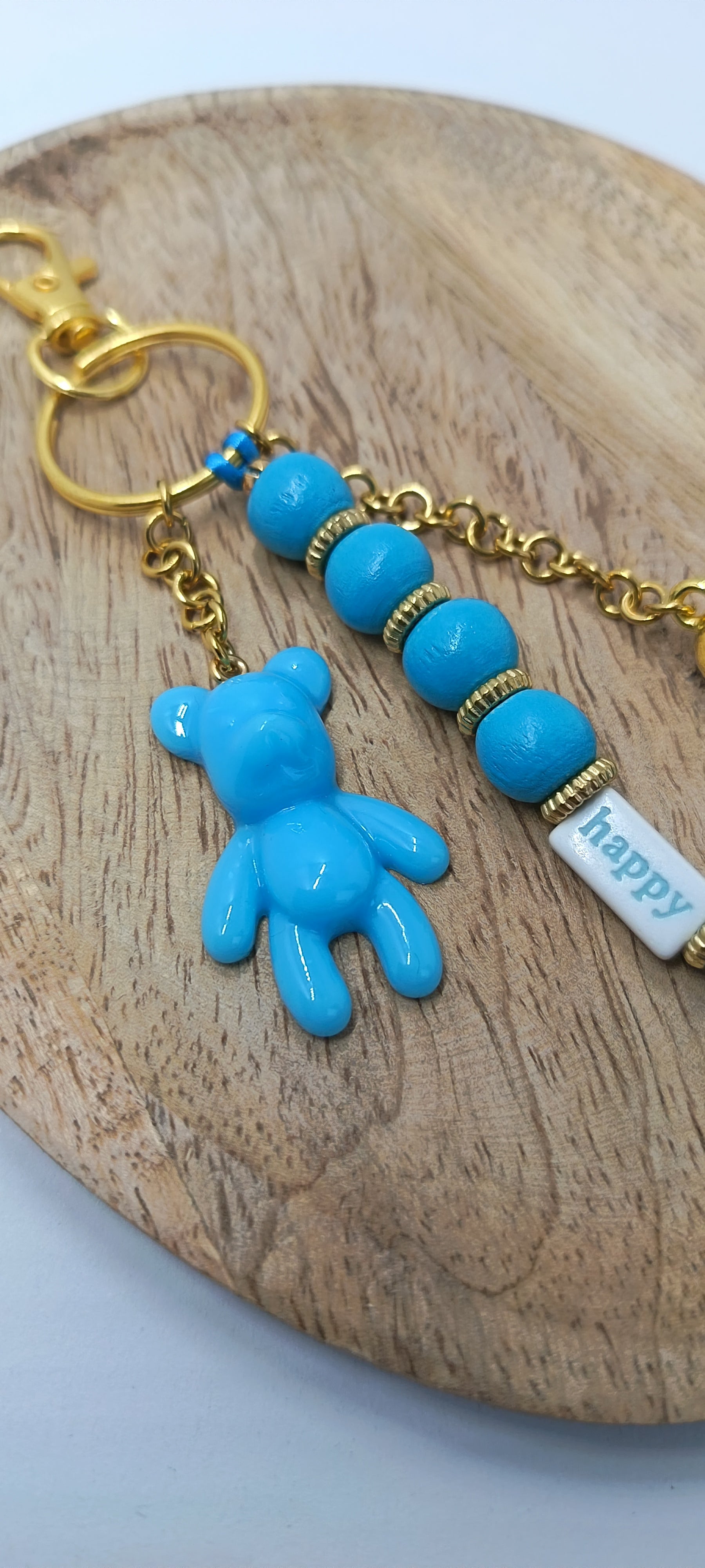 Bijou de sac porte clé bleu et doré Happy Teddy